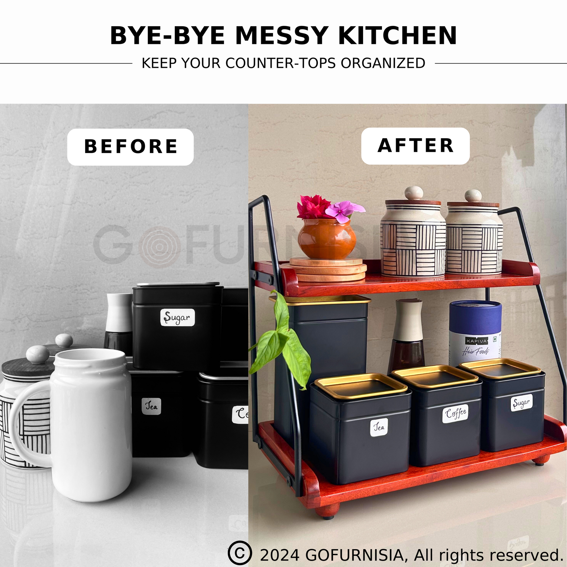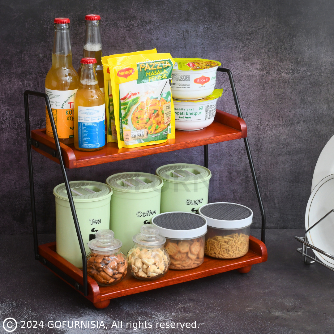 Gofurnisia Premium Kitchen Organizer Wooden Storage Rack | Solid Wood 2 Shelf Countertop Spice Rack/Oil/Bar Rack | 1 Year Warranty | Diy | Handcrafted In India - Tiered Shelf